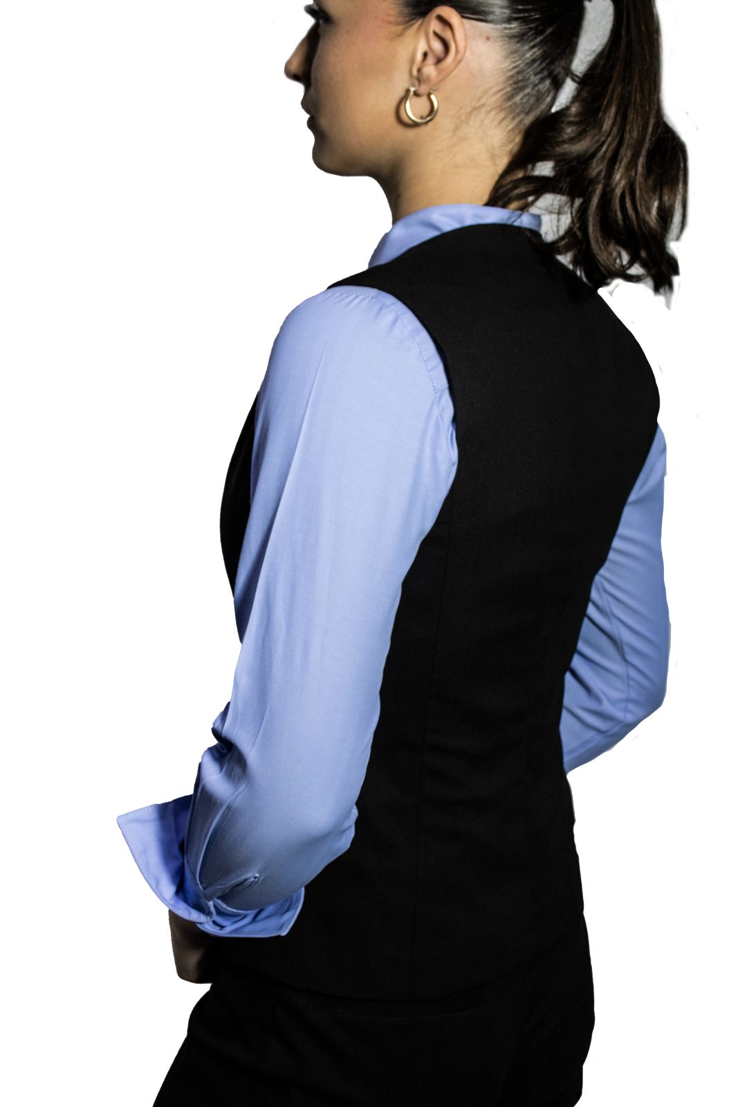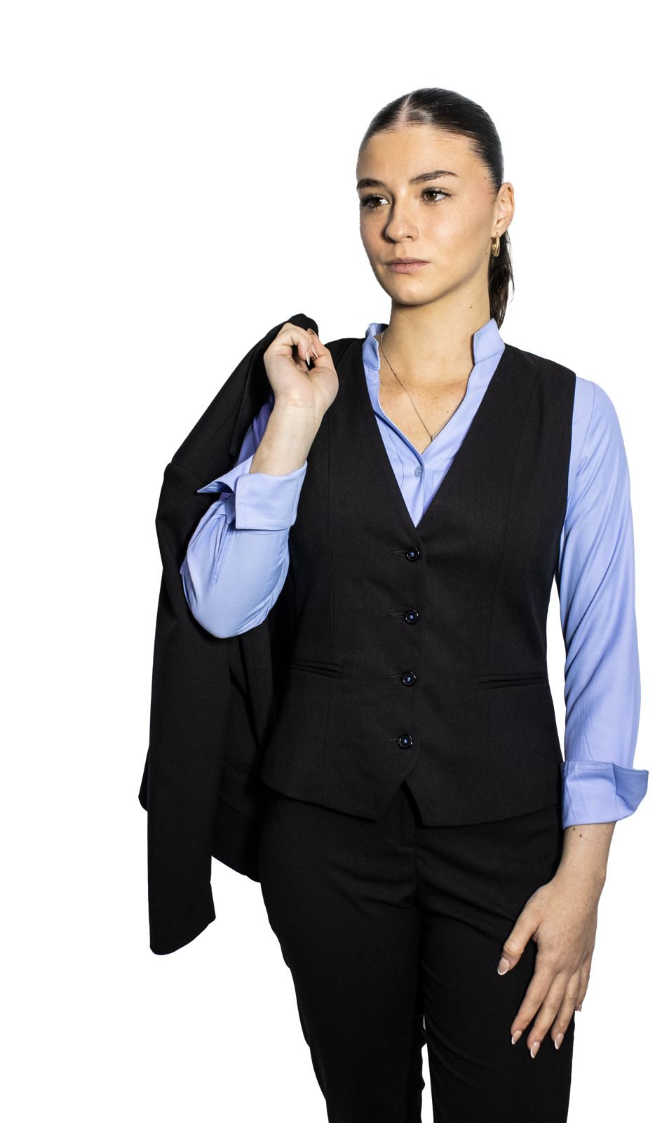 • 2.- BUSTO (SACO, CHALECO Y BLUSA): PASAR LA CINTA MÉTRICA POR DEBAJO DE LOS BRAZOS, RODEANDO LA PARTE MÁS PROMINENTE DEL BUSTO. ESTA MEDIDA DETERMINA LA TALLA DEL SACO, CHALECO Y LA BLUSA.